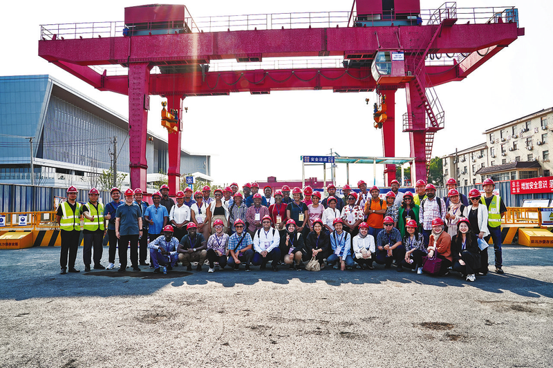 “一带一路”国家代表团走进装配式地铁车站施工现场。