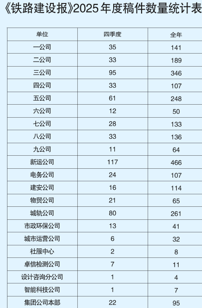 《铁路建设报》2025年度稿件数量统计表