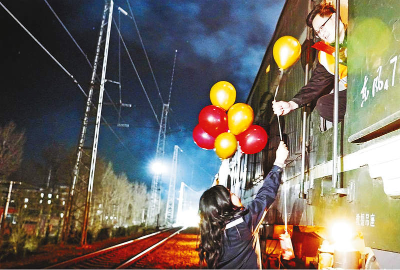 当机车缓缓停靠,中铁一局新运公司托电铁路运输公司的暖心问候如约而至——一只只喜庆的新春气球,一份份满载心意的惊喜红包,由工作人员在站台边轻轻递到机车乘务员手中。小小的惊喜,承载着浓浓的关怀;真挚的问候,温暖着坚守一线的身影。