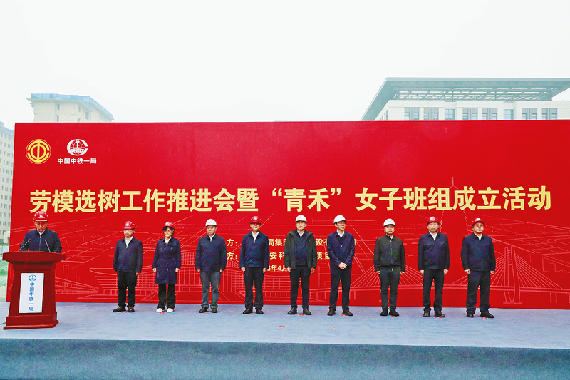 本报雄安讯 4月9日,中铁一局二公司劳模选树工作推进会暨“青禾”女子班组成立活动在雄安新区成功举办。雄安新区党工委委员、管委会副主任、总工会主席赵丰东,雄安新区总工会常务副主席、党政办公室副主任周凯;中国中铁雄安区域总部总经理尚武孝,副总经理、工会主席王树旺;中铁一局党委副书记、工会主席刘为帛,工会副主席张瑞生,以及工会工作部、河北经营部、二公司相关