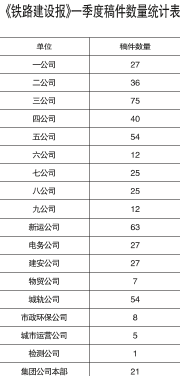 《铁路建设报》一季度稿件数量统计表